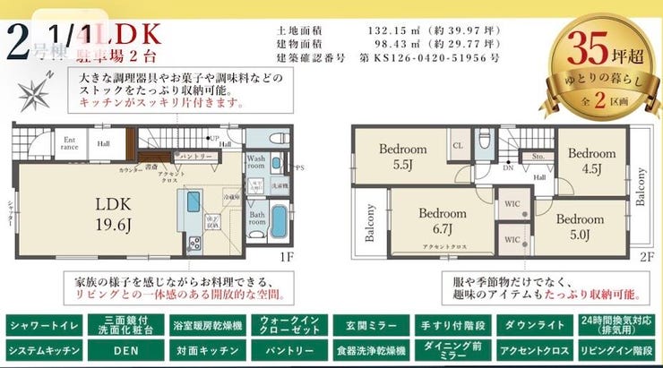 | 建物面積 | 98.43㎡ | 駐車場 | あり 普通:2台 |